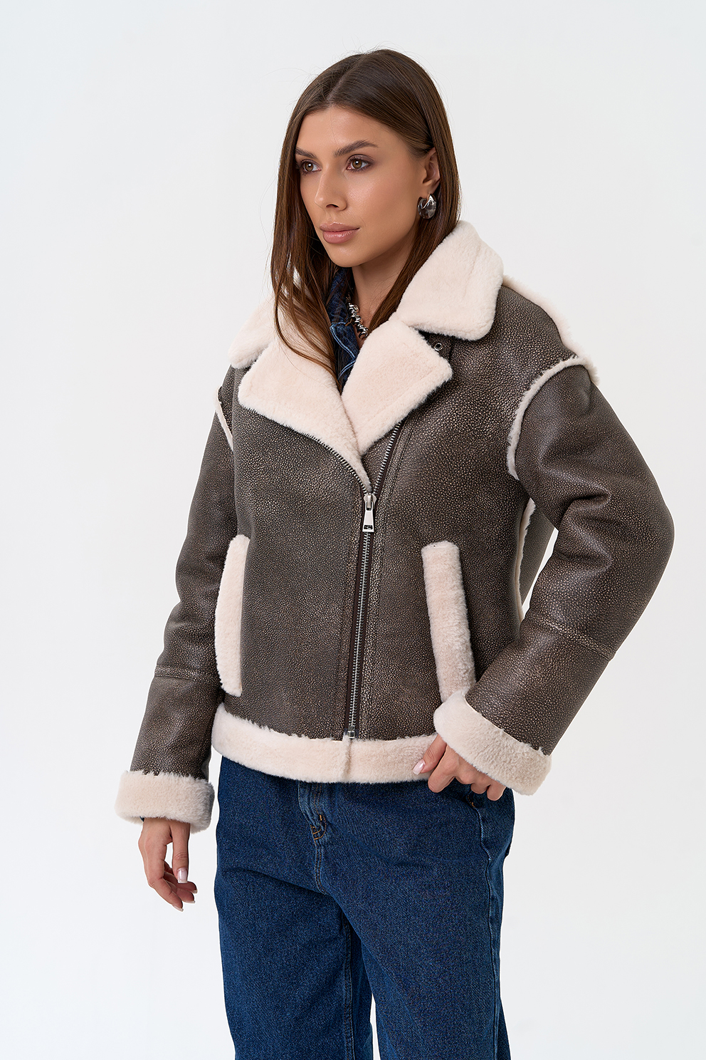Вид ворота - отложной, отделка эко мех белый