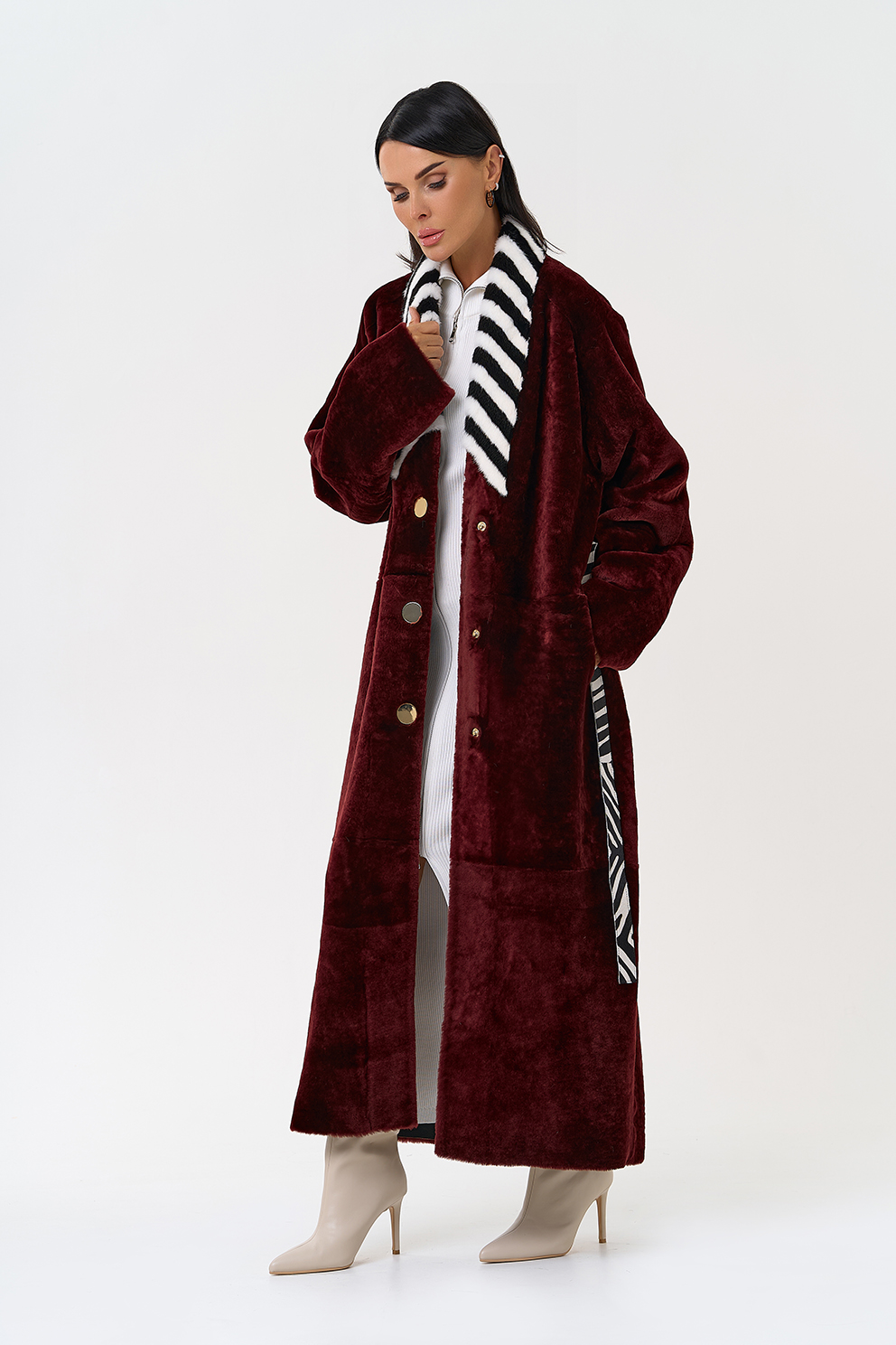 Вид застежки - кнопки, пояс из меха теленка Cavallino