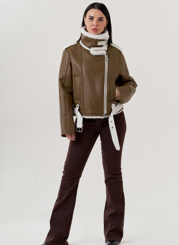 Крой воротника - отложной , отделка овчина белый